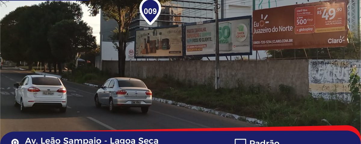Endereço: Av. Leão Sampaio Tipo: Padrão Visão: Juazeiro / Barbalha Bairro: Lagoa Seca Cidade: Juazeiro do Norte – CE Referências: Depois da CRC e Campus Saúde UNILEAO