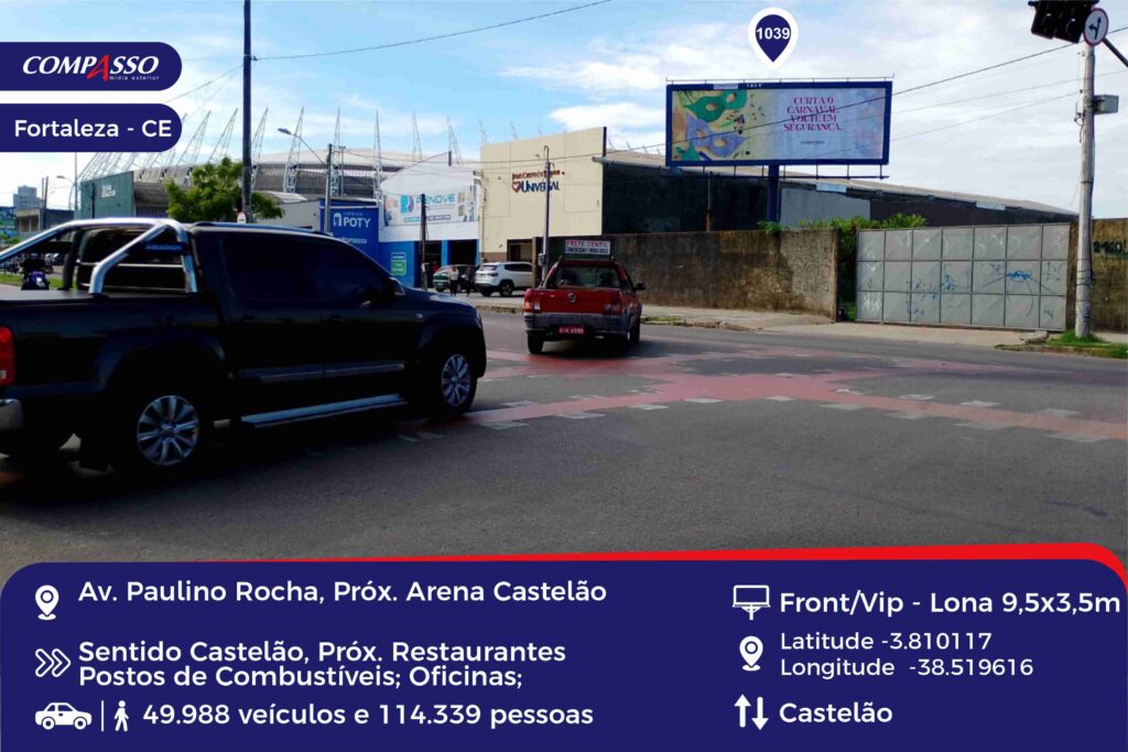 Endereço: Av. Paulino Rocha, próximo ao Castelão Tipo: Front Bairro: Castelão Visão: Castelão Cidade: Fortaleza – CE Referências: Vizinho à Arena Castelão;