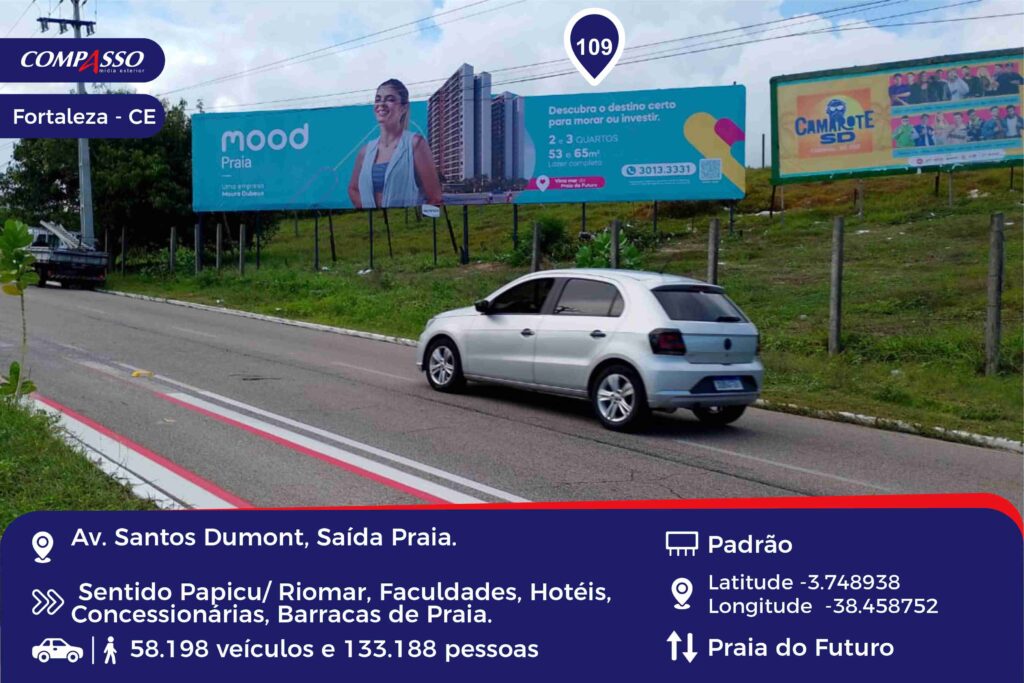 Endereço: Av. Santos Dumont, saída da praia Tipo: Padrão Bairro: Praia do Futuro Visão: Praia Cidade: Fortaleza – CE Referências: Faculdades, concessionárias, bares e restaurantes