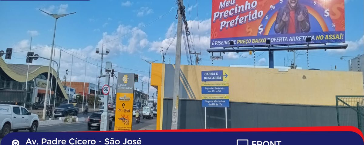 Endereço: Av. Padre Cícero – ao lado do Atacadão Visão: Crato / Juazeiro Bairro: São José Cidade: Juazeiro – CE Referências: Vizinho ao Atacadão em frente ao Assaí